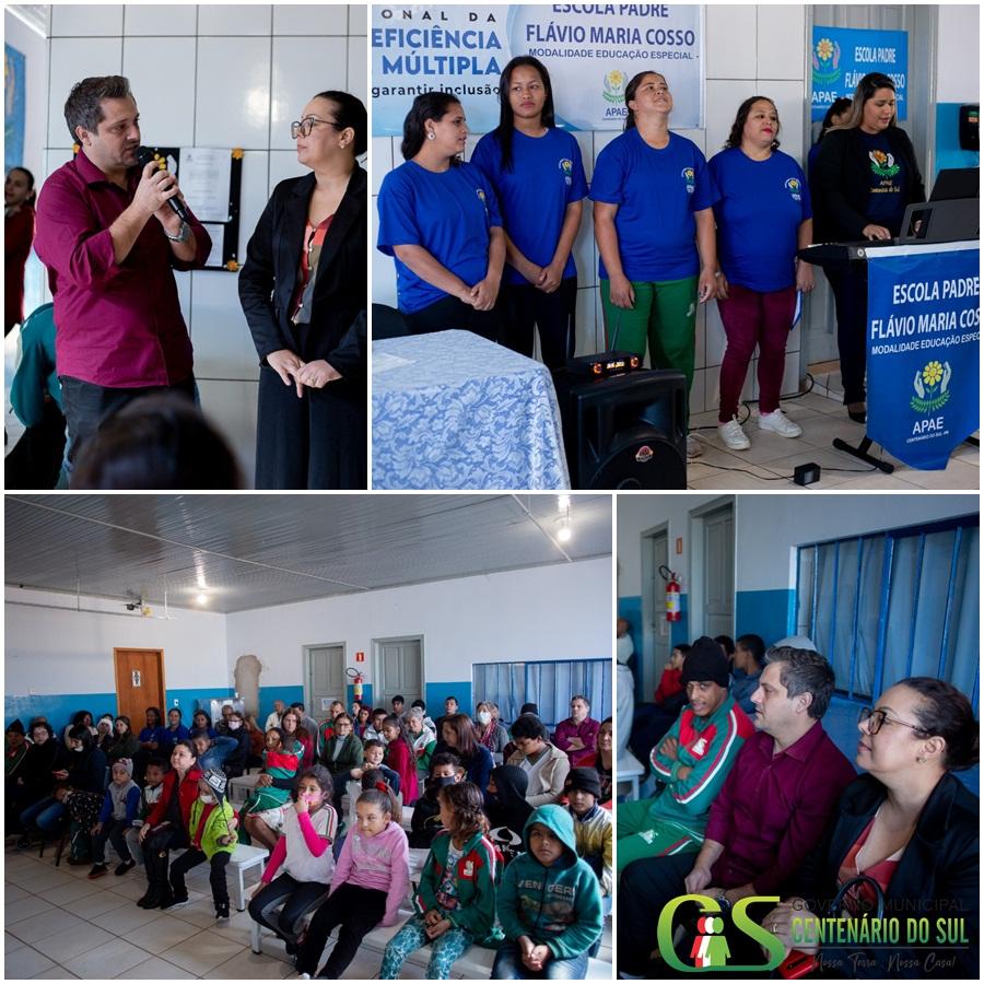 No mesmo dia, às 09h00, a Escola Padre Flavio Maria Cosso organizou uma caminhada com o objetivo de chamar a atenção da comunidade e as autoridades locais sobre a conscientização do tema da semana,” Superar Barreiras para garantir Inclusão”. O prefeito Junior Tavian e a vice prefeita, Sueli Vechiatto receberam os alunos e a Fanfarra da APAE, que fizeram uma apresentação na frente da prefeitura municipal.